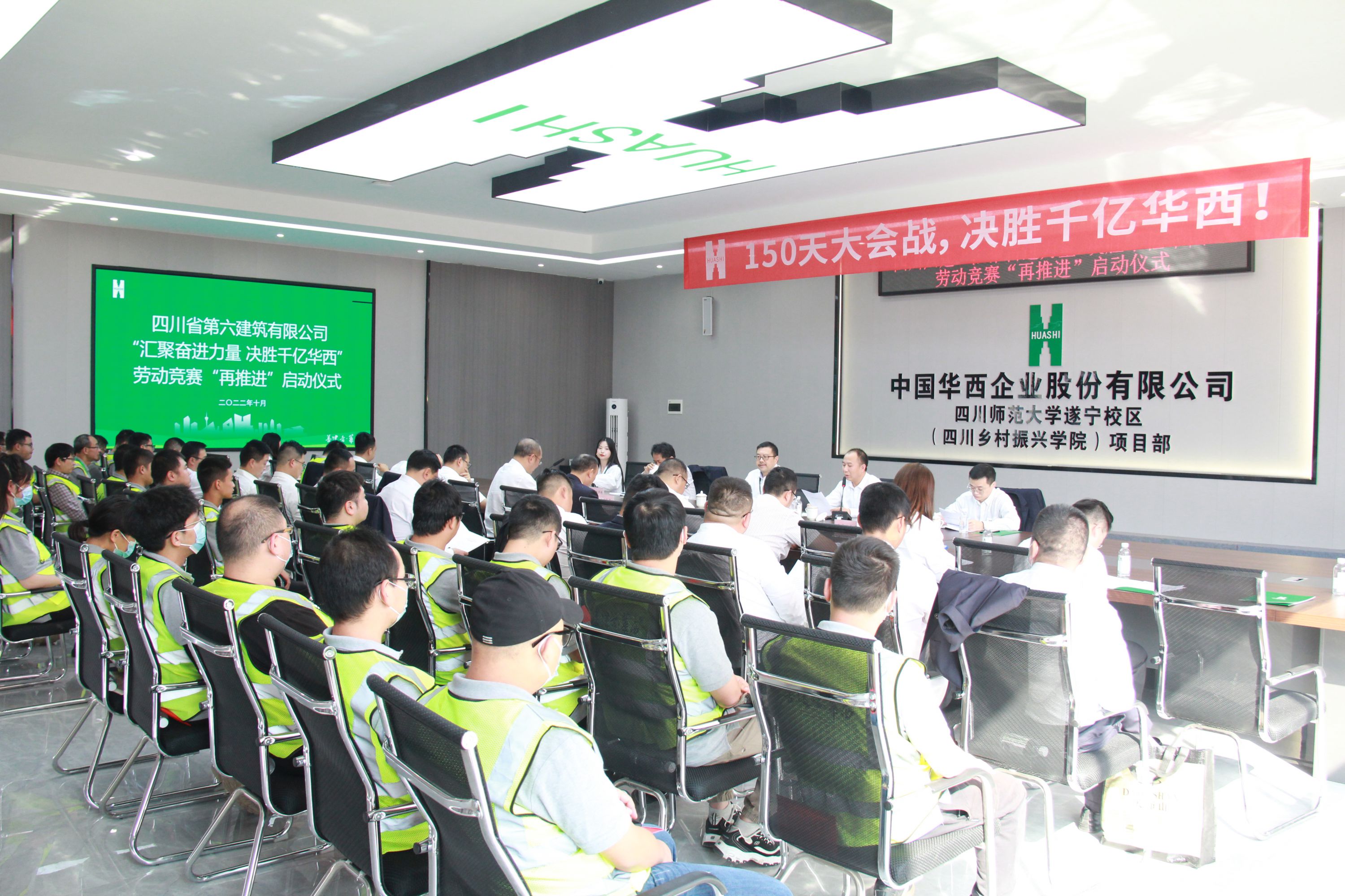 戰鼓催征、時不我待!在集團頒布第三道“金牌令”后,公司黨委聞令而動、迅速響應,10月21日下午,公司在四川師范大學遂寧校區(四川鄉村振興學院)項目部召開“匯聚奮進力量、決勝千億華西”勞動競賽“再推進”啟動儀式。