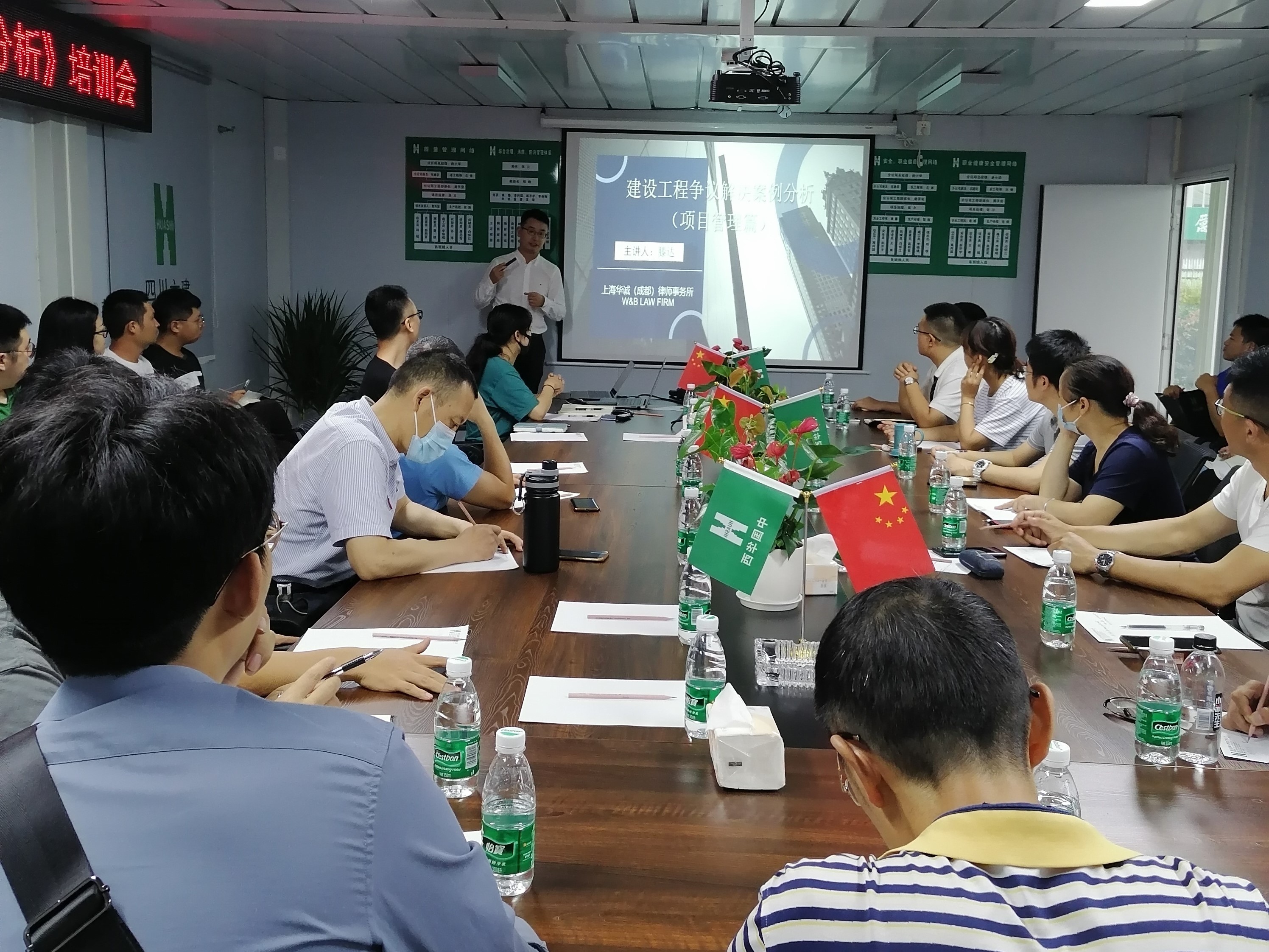8月25日,六分公司(安裝)在青白江鐵路港木材物流倉儲基地項目舉辦了《建設工程爭議解決及案例分析》專題講座。本次講座特邀上海華誠(成都)律師事務所滕達律師進行授課。六分公司(安裝)領導班子、部門負責人、項目經理、青年骨干共40余人參加本次講座。