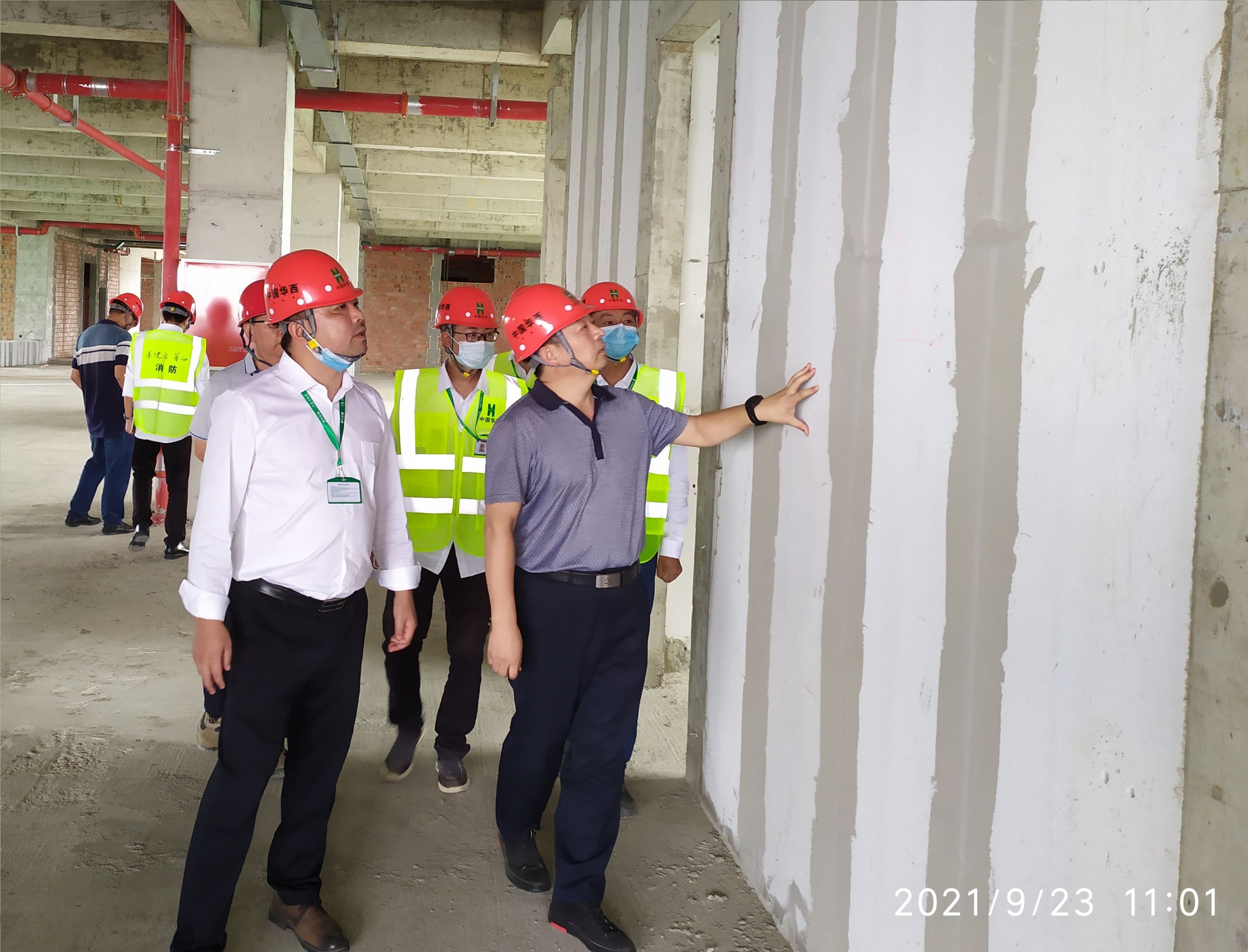 2021年9月23日,成都市建委領導及專家組蒞臨核動力設計研發大樓項目部,對項目部申報的成都市安全文明標準化工地、綠色工地及優質結構工程進行了現場評審驗收。四川六建安全生產部部長趙建芳、八分公司總工程師鄭勇、八分公司副總經理張天琪出席評審會。