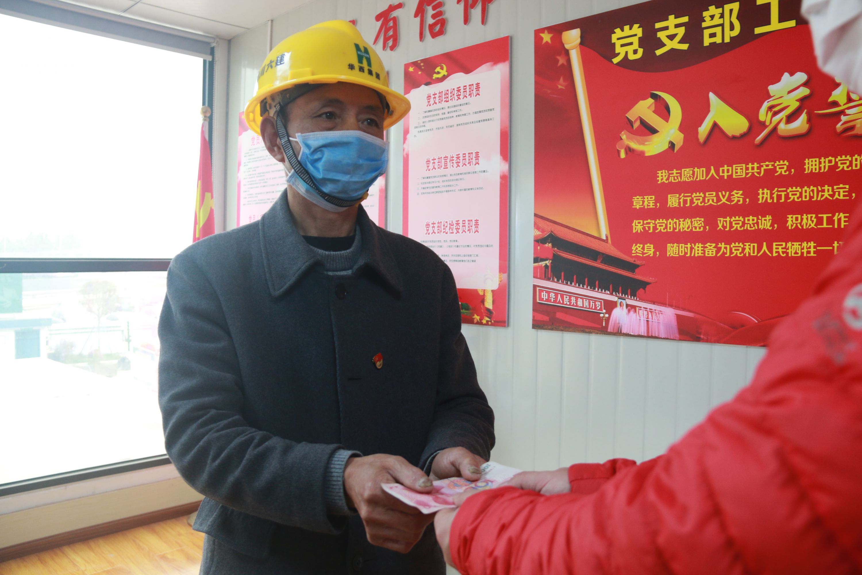 “這是我們的心意,請組織收下!代我們轉(zhuǎn)交武漢!”3月5日,在公司四川航空維修基地及辦公樓項目部,來自達州的砼工師傅任永明向項目書記遞上了一份自己對黨組織的一份“心意”。“我們雖然不能在‘疫情’一線出力,但是請組織放心,在項目工作上我們絕不‘拉稀擺帶’!同時,我也是一名共產(chǎn)黨員,這是我的一點綿薄之力,國家有難,希望組織能幫我轉(zhuǎn)交武漢。”來自內(nèi)江的磚工師傅唐定才和鋼筋工姚平,眼神堅定的望著項目支部書記,同樣請求他將自己的一片心意轉(zhuǎn)交。據(jù)悉,自公司川航項目開工以來,三名黨員同志就一直奮戰(zhàn)在項目施工一線,在施工現(xiàn)場貢獻自己的力量。接到復(fù)工通知后,三名黨員同志第一時間辦理完手續(xù)后回到項目部參與建設(shè)工作。回到項目后,聽聞了黨組織號召黨員捐款的消息,三名黨員同志自發(fā)的向項目黨支部遞上了自己的“心意”。