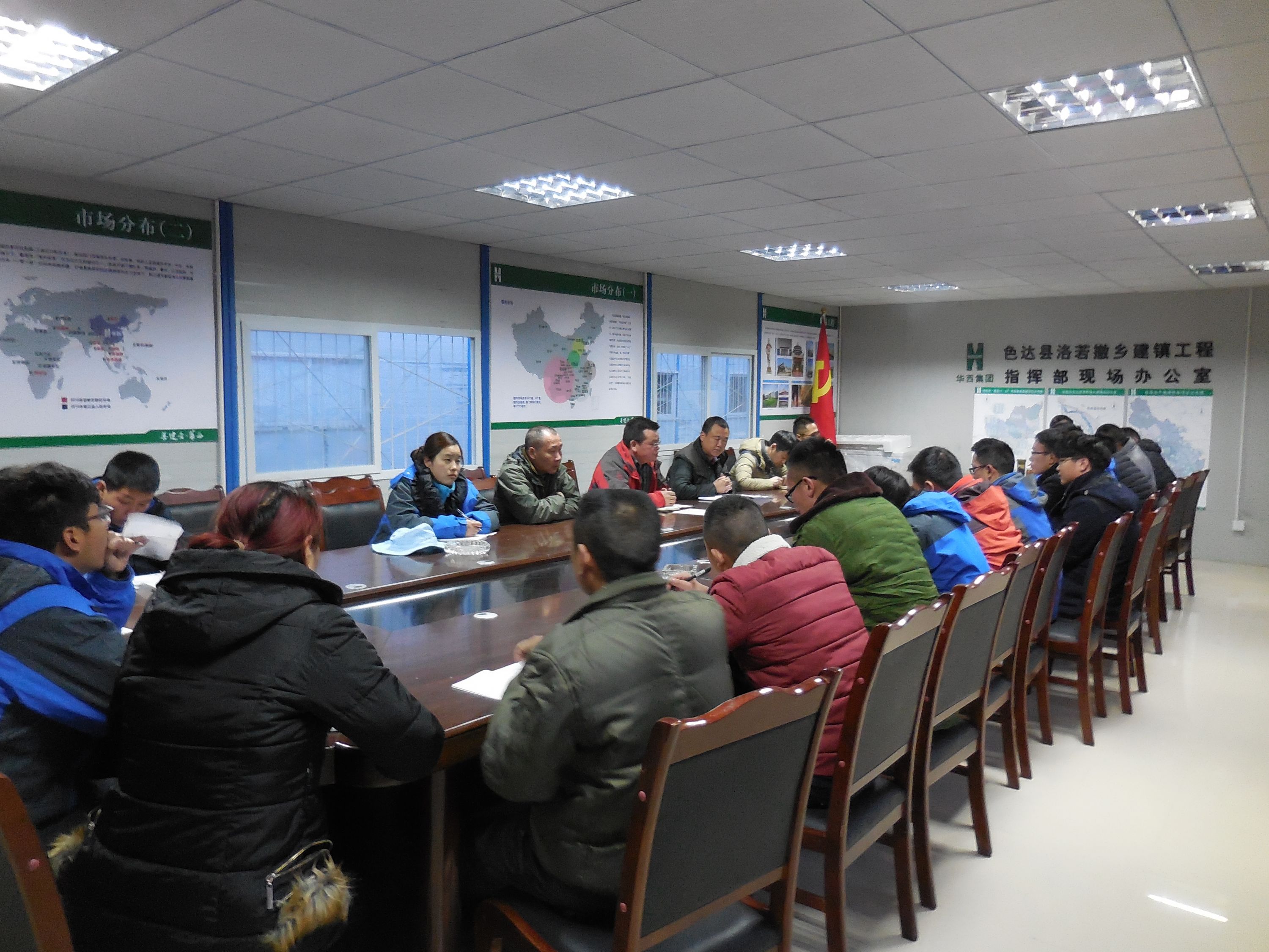 首批管理人員、食堂人員及工人共18人于4月5日動身前往色達縣,拉開了今年色達工程施工任務的帷幕。4月10日,第二批管理人員共計19人抵達色達。在開工前首次管理人員會議上,明確了調整后的項目管理團隊成員各自的職責分工,并對正式開工前的相關工作進行了安排布置。