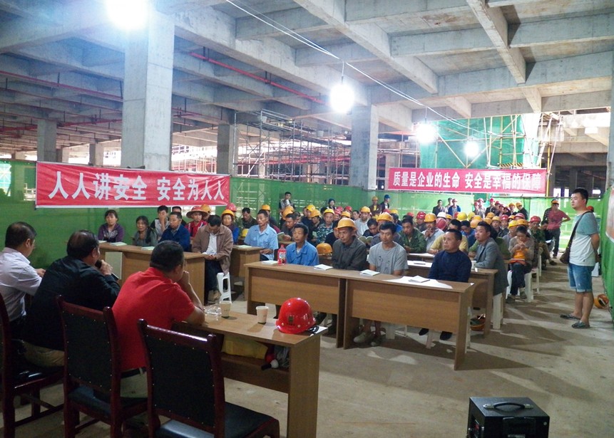 本次講座由簡陽市住房和城鄉規劃建設局、簡陽市建筑業協會共同主辦,并由簡陽市建筑業協會常務副會長兼秘書長曹琦主講。活動組織了七十余名農民工參加,現場座無虛席。會議內容主要宣傳施工現場安全文明教育,副會長曹琦詳細并生動的講了多個案例分析,著重對簡陽市各工地出現的安全事故進行舉例并作出分析。在項目施工中,為了使工程能夠安全、順利地開展,盡可能發揮每個職工的工作積極性,確保每個生產人員的安全,做到“高高興興上班,平平安安回家”,必須加強施工現場的安全管理,項目部和各施工作業處共同努力,創造一個良好的、安全文明的工作環境。