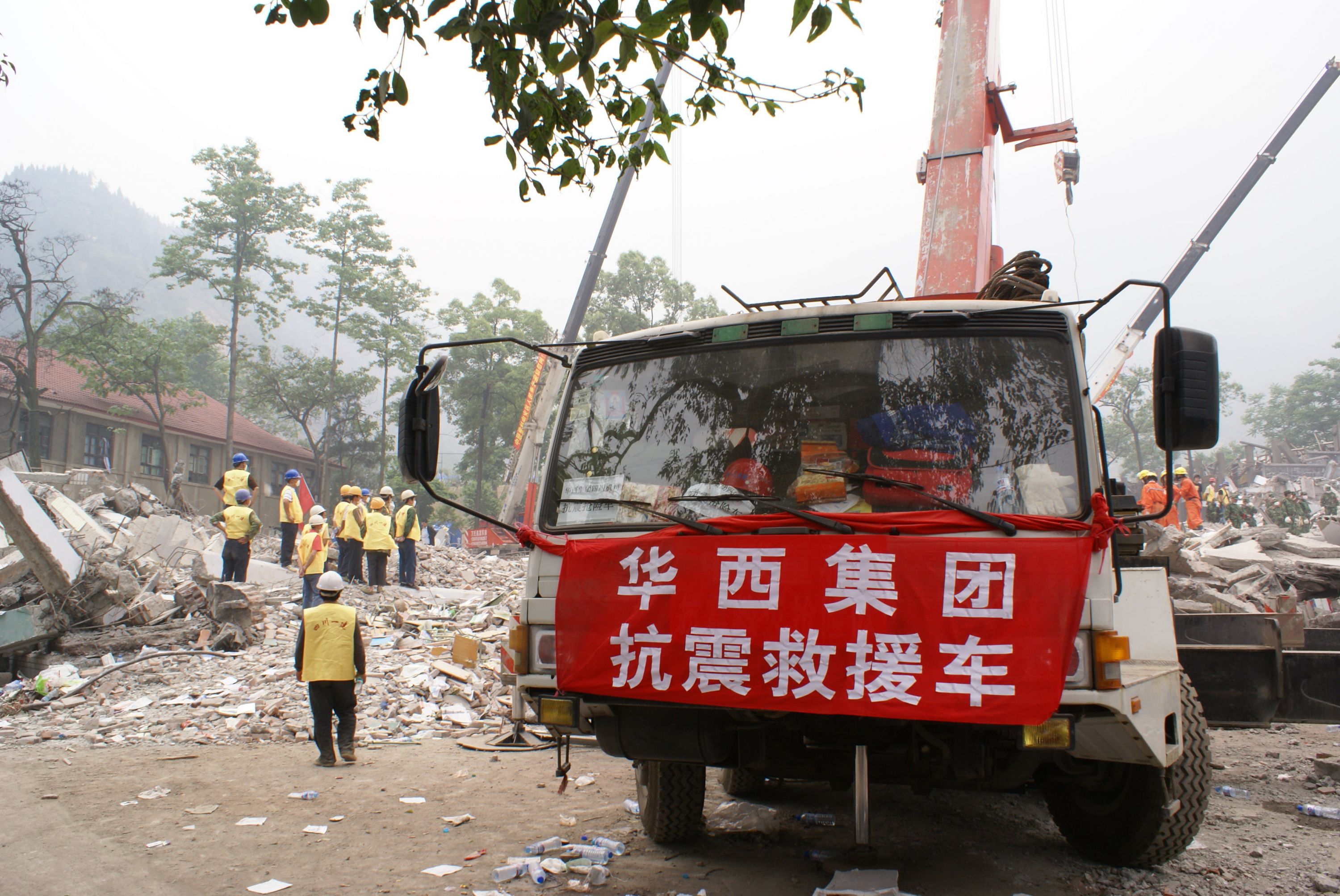 公司搶險隊在北川中學搶險救災